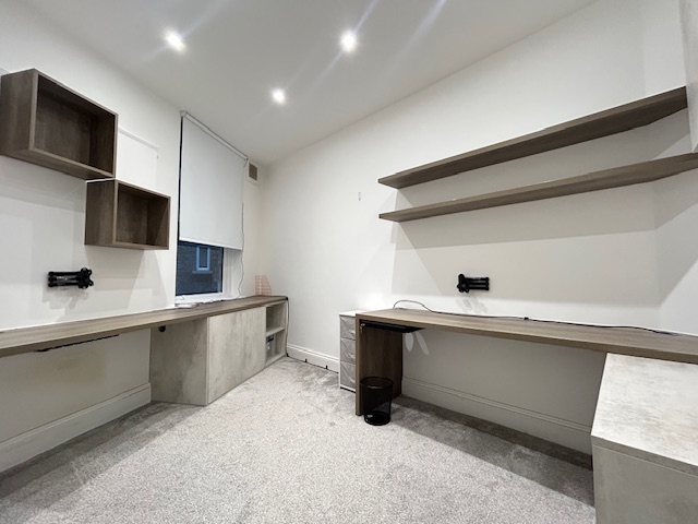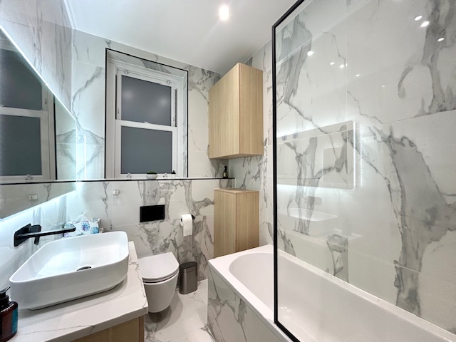 改装したばかりのモダンでスタイリッシュな内装が特徴で、広いリビング、ダイニングスペースが確保されたキッチン、多収納なベッドルーム、ベッドルームとしても使える書斎、お洒落なデザインのバスルーム。
