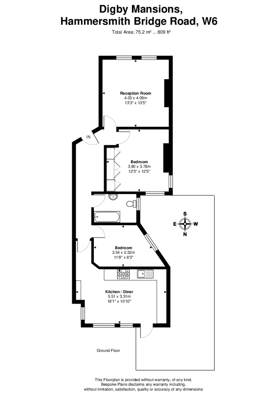 Hammersmith駅から徒歩7分の立地でテムズ川沿いに位置する建物、Digby MansionsのUpper Ground Floorの2ベッドルームマンションのご紹介です。